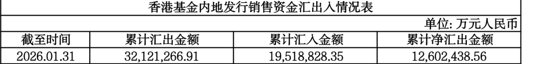 国家外汇管理局的数据显示,截至2026年1月底,香港基金内地发行销售资金累计净汇出金额约为1260.24亿元,连续6个月位于1200亿元之上。