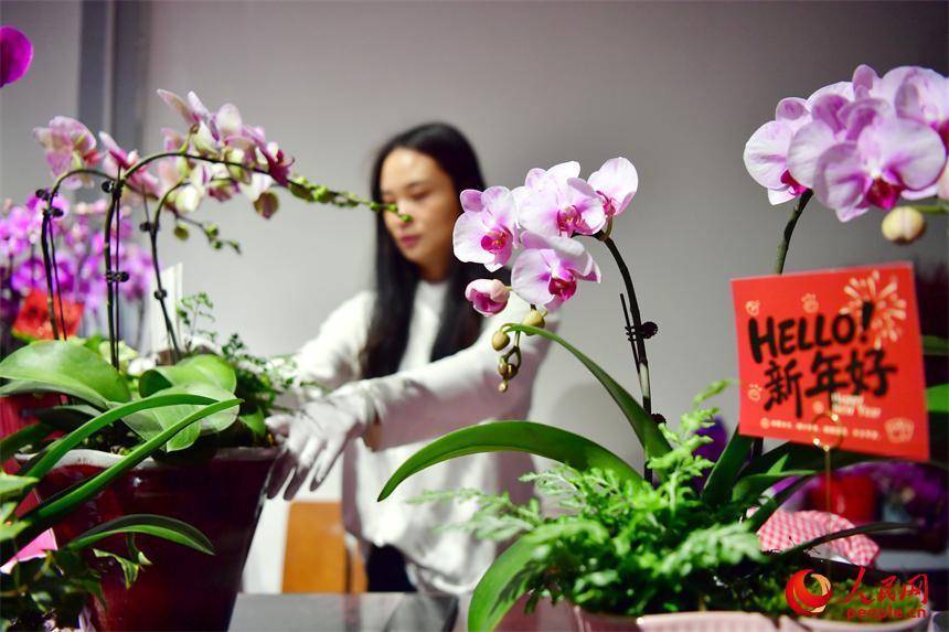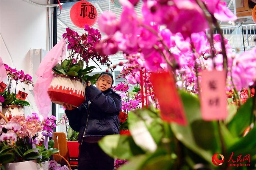 九洲公园迎春花市店铺内,店主正在整理花卉盆景。人民网记者 时雨摄人民网南昌2月4日电 (记者时雨)4日,立春时节,暖意初萌。江西南昌九洲公园迎春花市热闹非凡,春节前夕,市民们携亲伴友,穿梭于姹紫嫣红之间,精心挑选着心仪的年宵花,为家园装点新春气息。