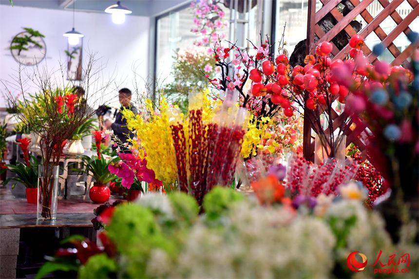 九洲公园迎春花市各色鲜花绿植争奇斗艳。人民网记者 时雨摄